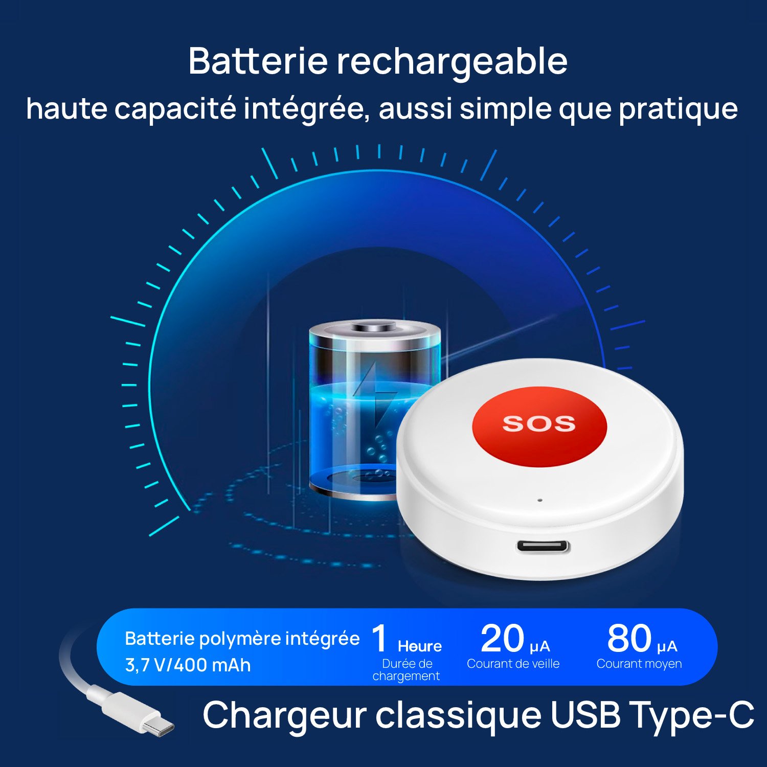 Le fonctionnement du bouton SOS est d’une simplicité redoutable : une simple pression sur le bouton permet d’envoyer une alerte immédiate sur le téléphone mobile d’un proche ou d’un aidant. Cette alerte est transmise via l’application Tuya Smart, gratuite et disponible sur iOS et Android.